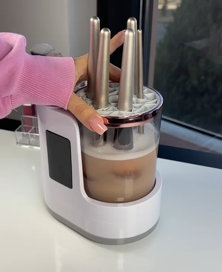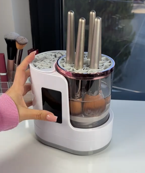 After cleaning, switch to drying mode — the high-speed rotation and airflow remove moisture quickly, leaving your brushes dry and ready to use.